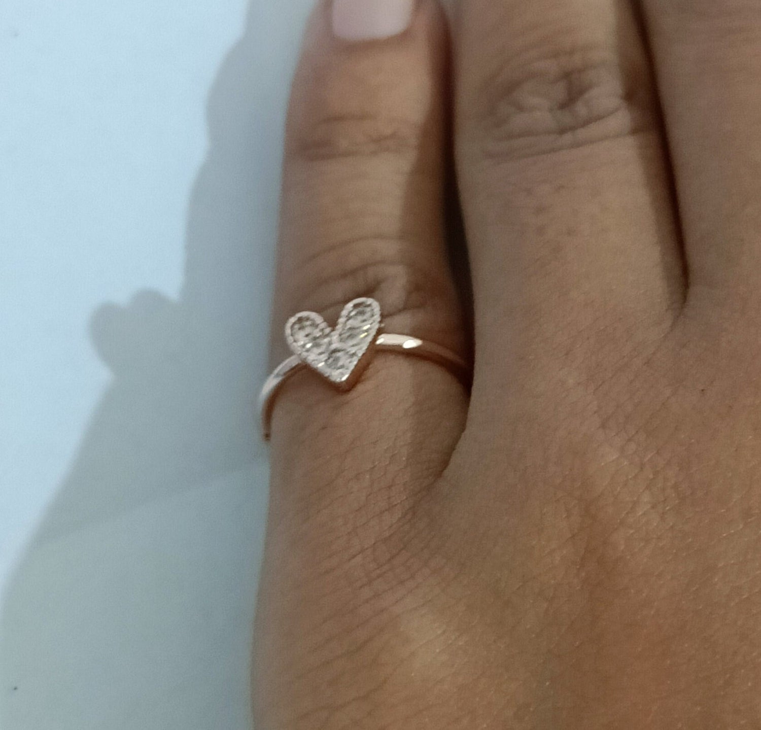 Small heart ring, dainty heart ring, silver heart ring, diamond heart ring, sterling silver heart ring, dainty delicate ring for her, gifts