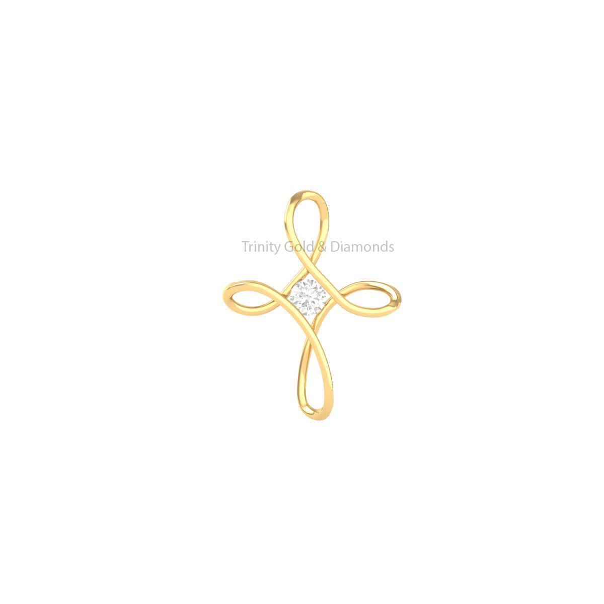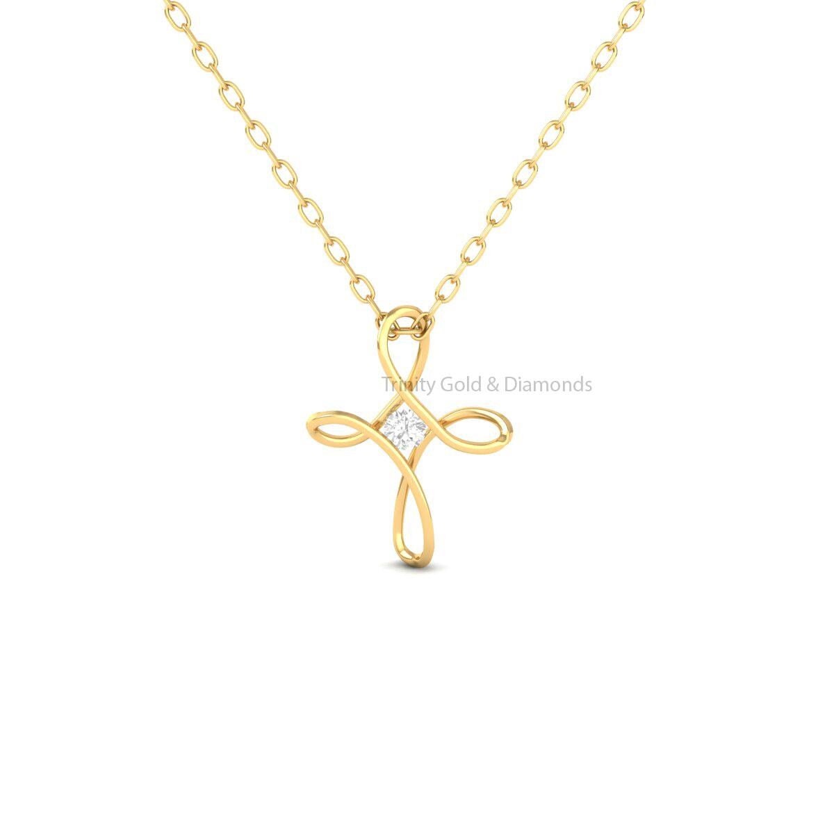 Handmade Lab Grown Diamond Solitaire Cross Pendant Necklace for Women • 14KT Gold Dainty Cross Pendant • Religious Gift for Her