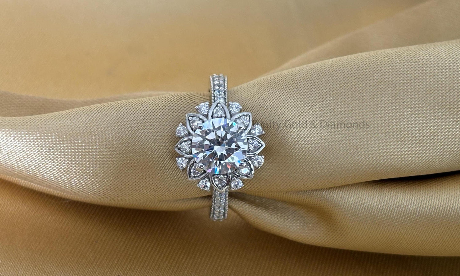 Solitaire Engagement Ring • Flower Lab Grown Diamond Ring • Statement Ring for Women • Perfect Gift
