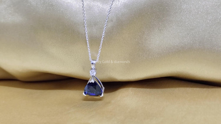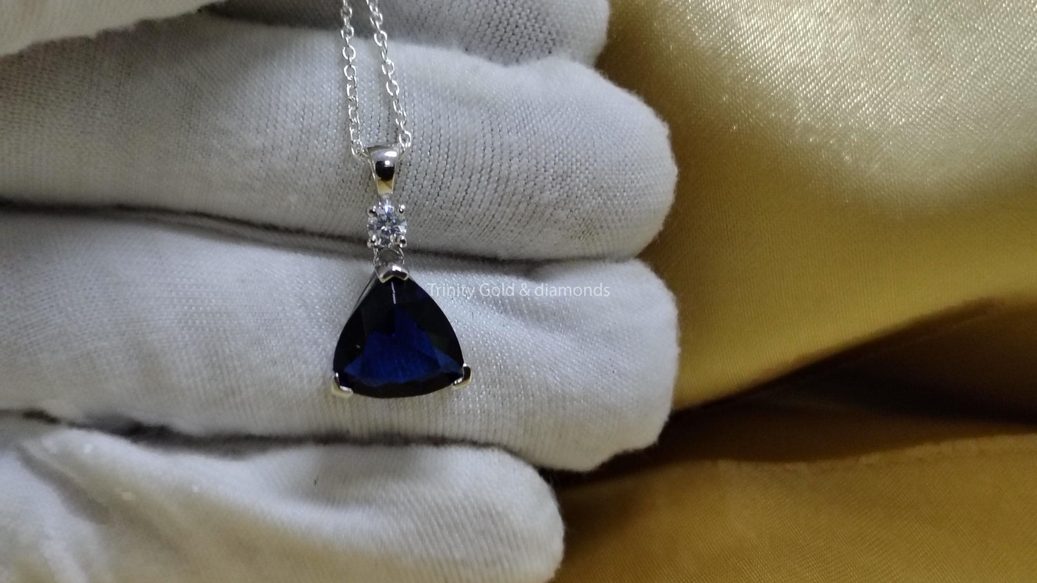 Trillion Cut Sapphire diamond Pendant for Women • Blue Sapphire and White Moissanite Diamond Pendant Necklace for Her • Birthday Gift