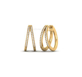 Elevate your style with these modern V-shaped gold hoop earrings, designed with twin rows of brilliant Cubic Zirconia for double the shine. Their sleek, hinged design and geometric profile make them a standout piece for both casual and dressy looks.